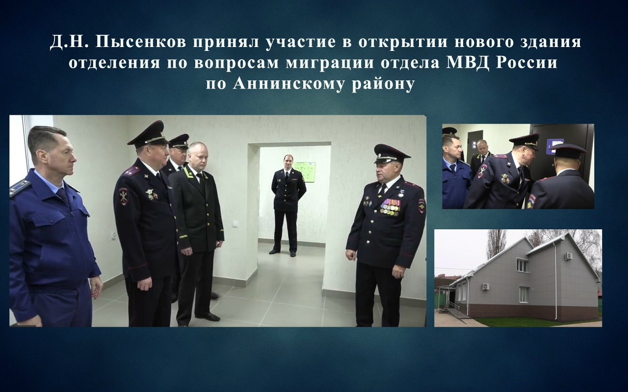 Исполняющий обязанности председателя Аннинского районного суда Воронежской области Денис Николаевич Пысенков принял участие в открытии нового здания отделения по вопросам миграции отдела МВД России по Аннинскому району. Начальник отделения Юрий Николаевич Саликов провел экскурсию для сотрудников правоохранительных органов, обратив внимание на то, что для оказания государственных услуг созданы все условия для максимально эффективной деятельности работников миграционной службы и удобства посетителей. ![]() |